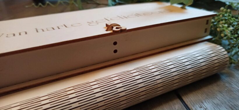 Op het deksel kan op verzoek een tekst gegraveerd worden. Helemaal speciaal wordt het als er ook aan de binnenkant een persoonlijke boodschap komt te staan.